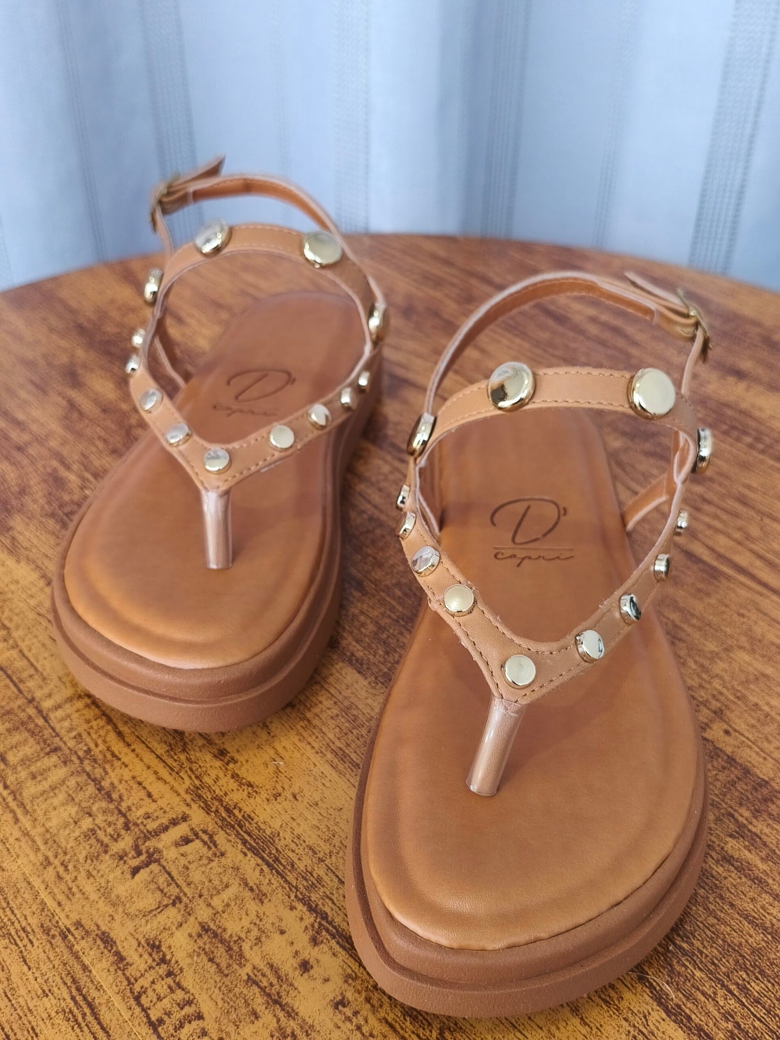 - Cor Atemporal (Camel/Caramelo): A cor Camel/Caramelo é clássica e extremamente versátil. Um tom terroso atemporal que harmoniza facilmente com as mais diversas cores e estampas, tornando a sandália ideal para todas as estações e ocasiões casuais.