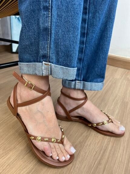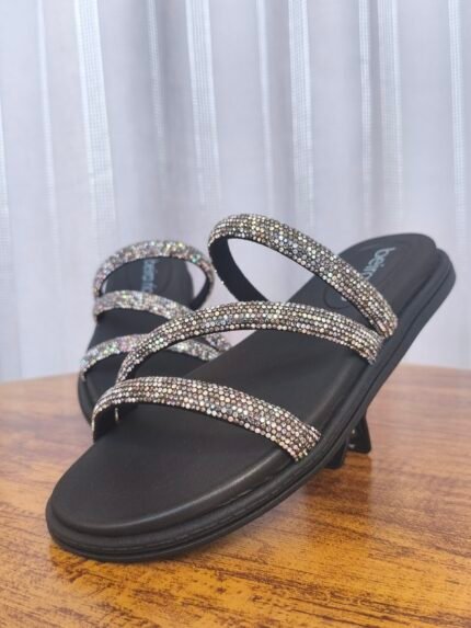 - Detalhes: Tiras largas e cruzadas totalmente cobertas por strass.