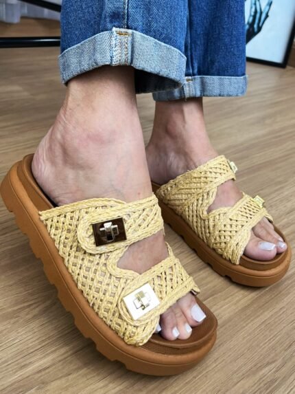 • Estilo Papete Slide: É um modelo casual, do tipo slide (calce fácil, sem fecho), ideal para o dia a dia, passeios ou momentos de lazer.